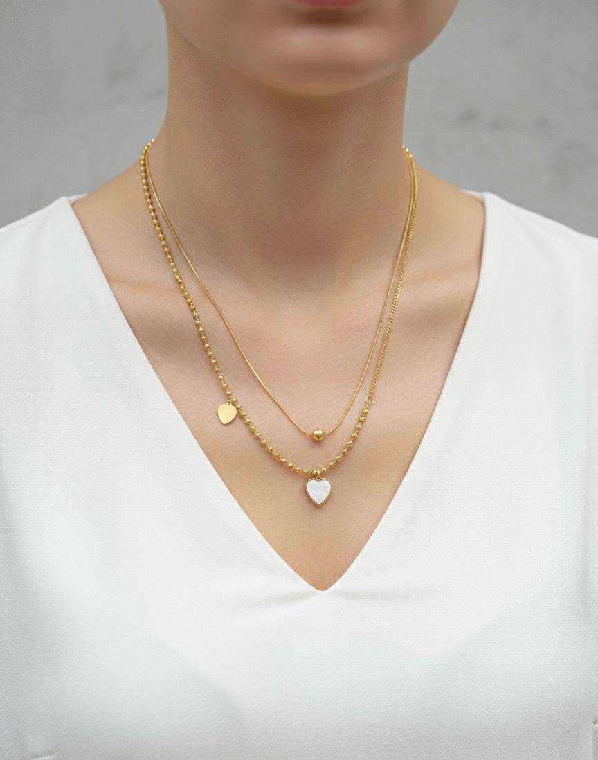 - Design: Double-layered with a dainty bead strand and a polished heart pendant.