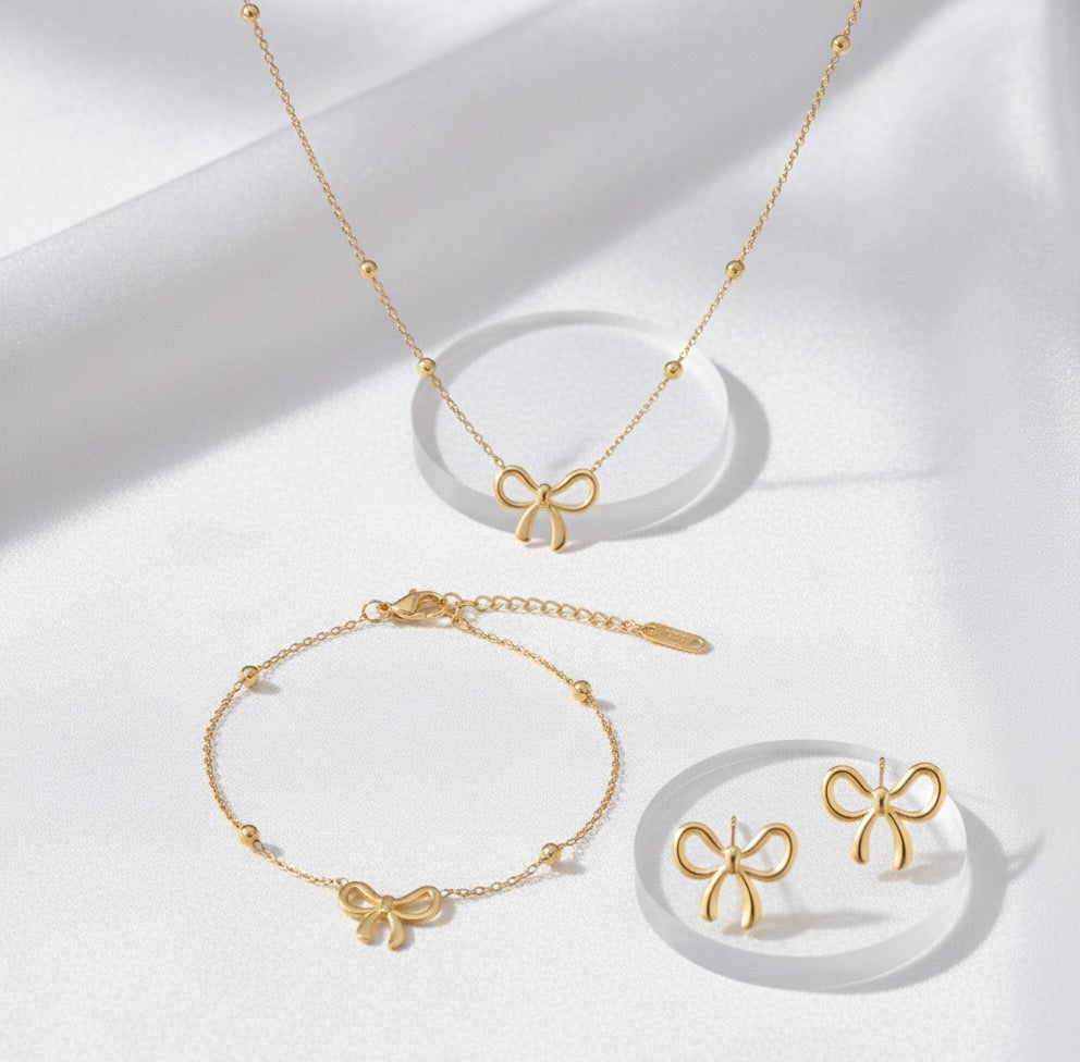 Bow Jewelry Set — 18K Gold Plated Stainless Steel (Anti-Tarnish)
